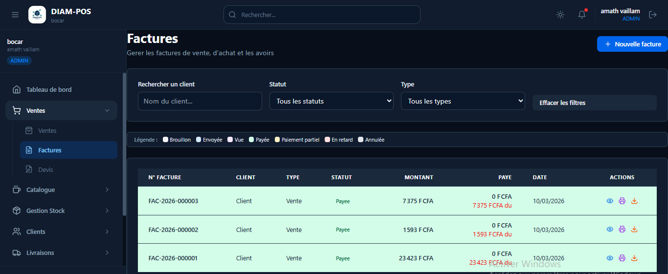 Solution complete de point de vente, gestion des stocks, facturation et comptabilite. Fonctionne hors-ligne, conforme OHADA, avec Mobile Money integre.